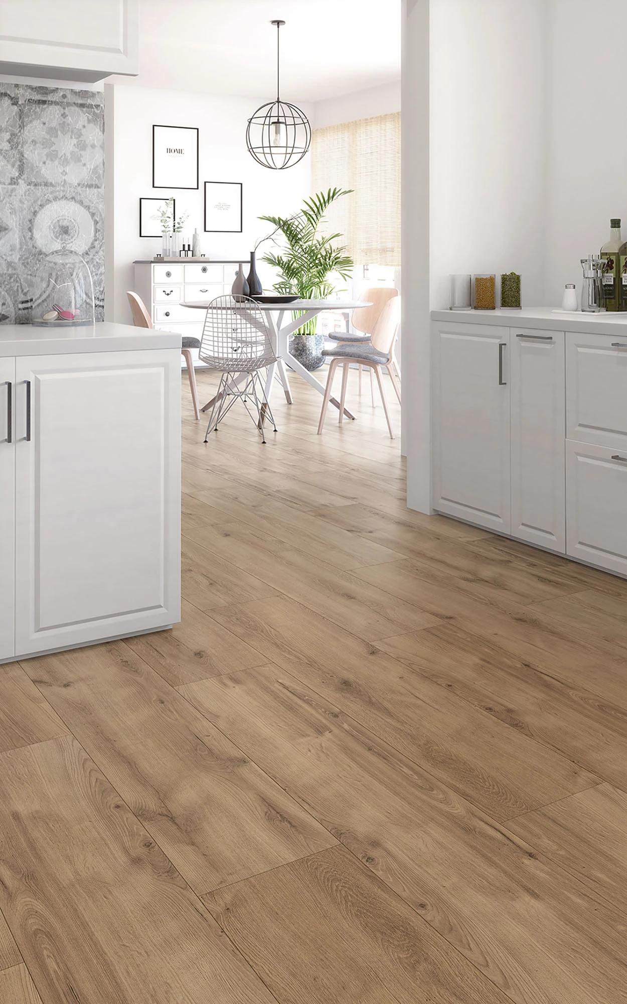 Waterproof laminate surfaces deliver reliable protection without compromising the warmth and character of wood-inspired design.